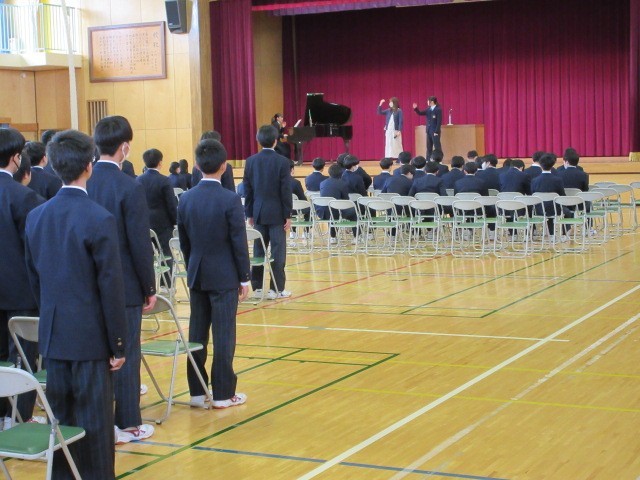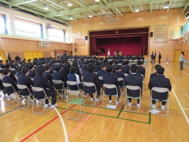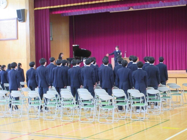 3月13日(金)に全校生徒で、卒業式練習をしました。