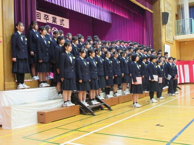 3月19日(木)に第79回 卒業式を挙行いたしました。卒業式には、多くの保護者や地域の皆様にご参列していただきました。ありがとうございました。卒業生の皆さん、健康に留意し今後の活躍を願っています。