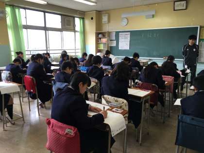 本日、八王子市学力定着度調査(国語・数学・意識調査)が行われています。これまでの学習の定着度を理解してもらい。この調査で生徒の自己の学習習慣を振り返り、中学校生活の中でさらに意欲的に学習に取り組む態度を伸ばしてもらうことを期待してます。