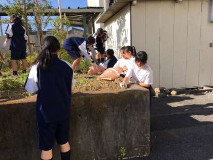 PTAの方々と一緒に西門周辺とテニスコートを中心に草むしりを行いました。これで運動会に向けての準備も出来ました。PTAのみなさまご協力ありがとうございました。