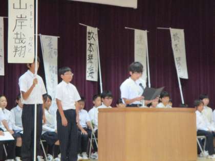 本日、5時間目に生徒会役員選挙を行いました。投票前に会長候補2名、役員候補7名 計9名の立候補者が体育館で立会演説を行いました。今までの伝統を継承し、さらに学校を良くしていきたいという候補者のそれぞれの考えや生徒会運営をどのようにしたいかを全校生徒の前で堂々と演説しました。