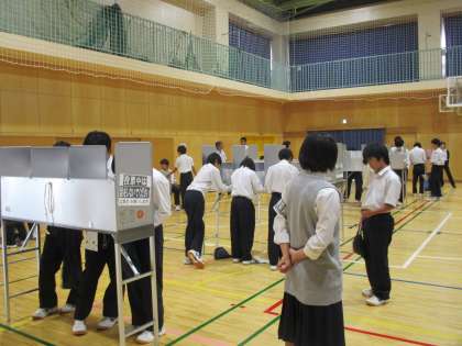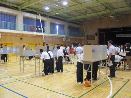 八王子市選挙管理委員会から選挙台や投票箱を借りてきました。