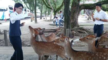 多くの鹿の出迎えをうけ、東大寺、興福寺、 春日大社などの見学をしました。