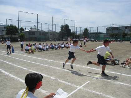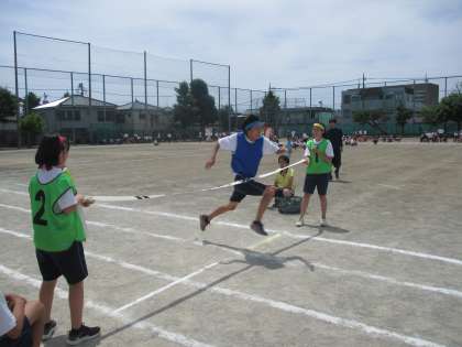 初めての全員リレー序盤は、1組がリードしていましたが終盤に2組が追い抜きそのままゴールしました。