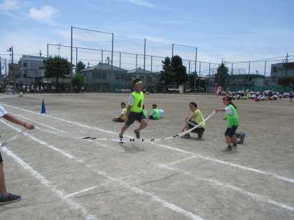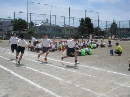 3年生の全員リレーはとても迫力がありました。最初は2組がリードしていましたが、徐々に1組、3組が追い上げ最後は3組が逃げ切りました。