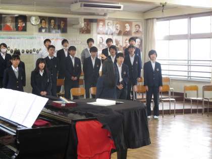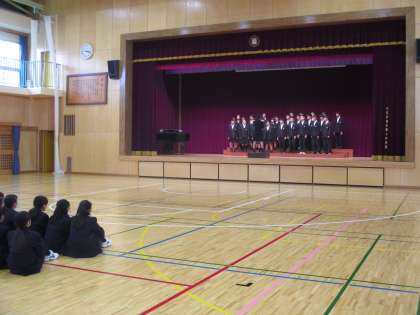3年生から1年生に合唱を聴かせる機会が今日はありました。先輩たちの歌声を見本に頑張ってください。