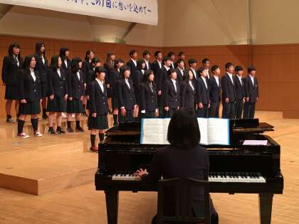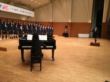 3年3組の自由曲は「生きている証」です。合唱の練習当初から声はとてもよく出ていました。記号や符号の確認など細かいとことまでチェックを繰り返していました。当日は、笑顔で歌いきることが出来ました。