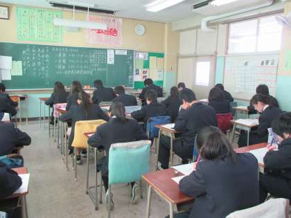 学年末考査最終日となりました。この1年間学習してきたことをどれくらい理解しているかを確かめる大事なテストでした。明日からは、テストが返却されます。わからなかったところ、間違えたところをそのままにしないで、教科の先生に聞くなどして理解してください。2年生でやるべきことは2年生で!1年生でやるべきことは1年生で!自分のやるべきことをしっかりとやり遂げてください。