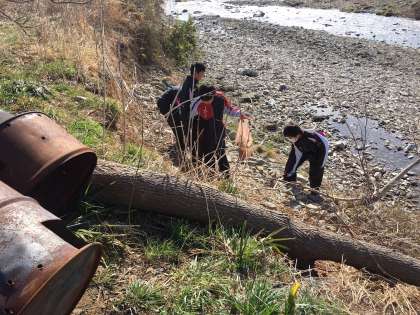 本日、地域のクリーン活動に参加しました。学校近くの浅川沿いでごみを拾いました。