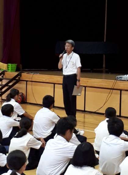 全校朝礼(9月) いのちを考える取組