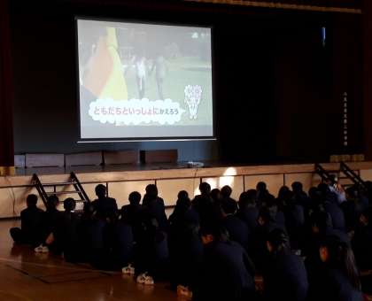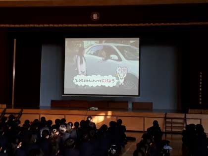 不審者対応に関する映像を見て、緊急時の対応方法について確認しました。2月に行う不審者対応の学習の事前学習にもなりました。