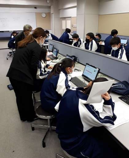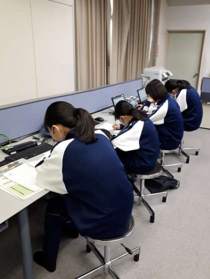 パソコンを使って気になる職業について調べたり、調べた内容を新聞にまとめたりしています。