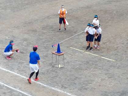 5組も2年生のボランティアの人たちとチームを組み、1年生の「ローハイド」に出場しました。