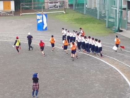 男子、女子の順でリレーしました。スタート前は学年主任から熱いメッセージが送られ、より一層やる気スイッチが入りました。