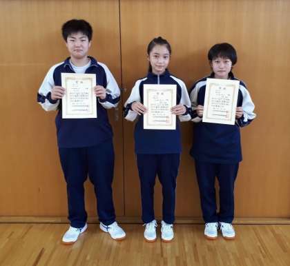 バドミントン部は市新人大会で男子シングルス第3位、女子ダブルス第5位でした。