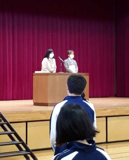 朝礼の前には、今週からお世話になる産休代替(音楽科)の先生のごあいさつがありました。どうぞよろしくお願いいたしたします。