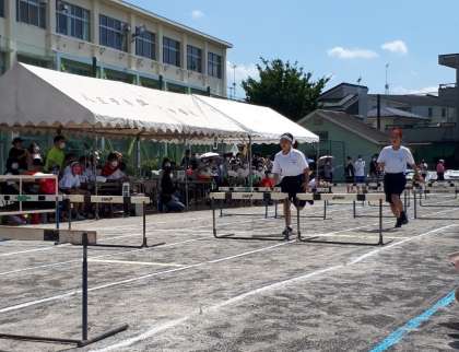 走りながらハードルを越えていく難しい競技ですが、体育の時間や朝練習で努力を重ねてきました。