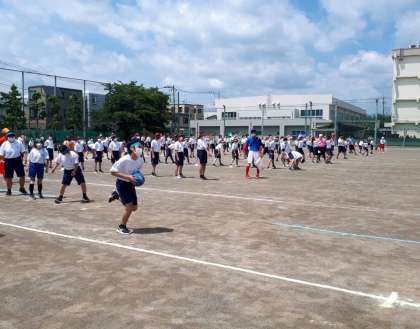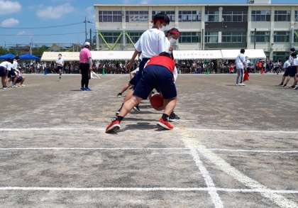 チームでのかけ声やボールを渡す姿勢等、協力が大切になる競技です。全校で行ったので、応援もとても盛り上がりました。