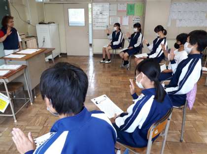手話の様子です。講師の先生の話を真剣に聞き、手を動かしながら理解しようとしていました。