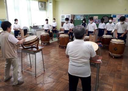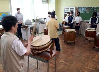 3年前(コロナ前)の夏祭りでは、ふれあい講座の生徒も参加させていただき、実際にお祭りのなかで太鼓をたたかせてもらいました。