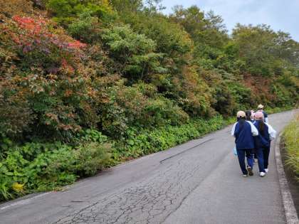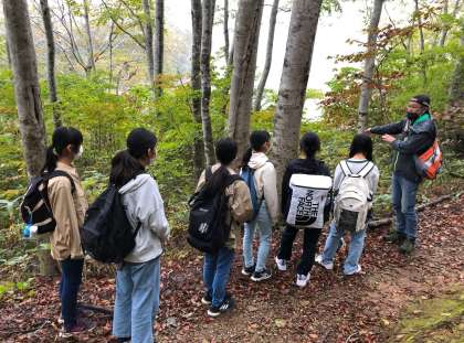 ブナ散策では、宿の方の説明を熱心に聞いていました。