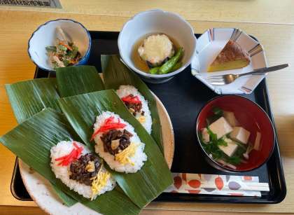 戸狩の郷土料理「笹ずし」です。毎日おいしい食事をいただいています!