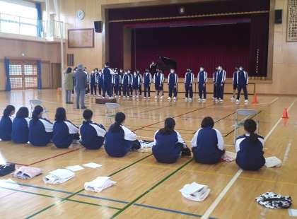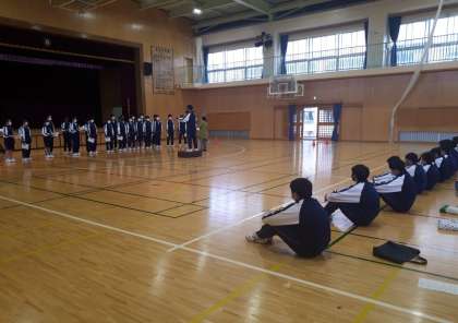 舞台へ上がる動き、舞台での立ち位置等の確認をしました。