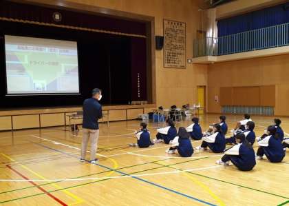 日本交通安全教育普及協会の方を講師としてお招きし、自転車の乗り方、危険を回避する方法等について映像を見ながら説明していただきました。