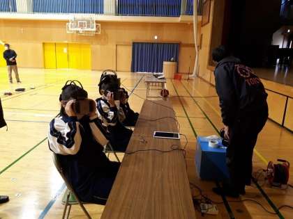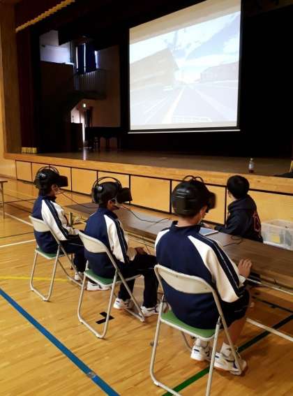 授業の後半には、代表者がVRゴーグルを装着して、よりリアルに危険な場面を感じながら学習することができました。