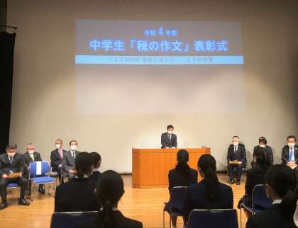 中学生「税の作文」表彰式が八王子市学園都市センターで行われました。