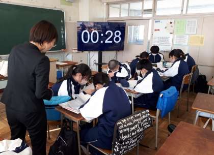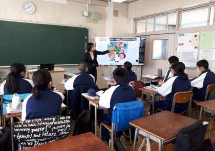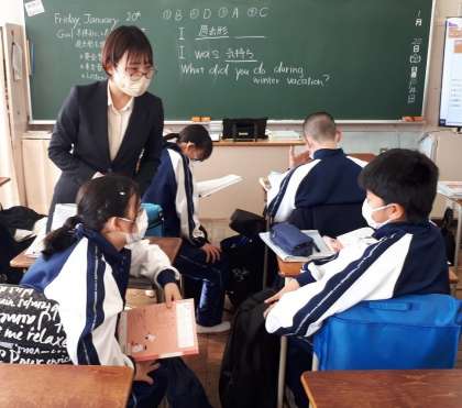 1年生の英語では、「冬休みにしたことについて過去形でを使って発表する」授業を行っていました。