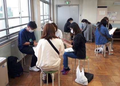 運動会の受付は、校外委員さんにお手伝いをお願いしています。