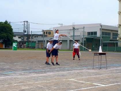 仲間がうまく的に当てたときは、クラスから大きな歓声が上がりました!