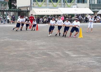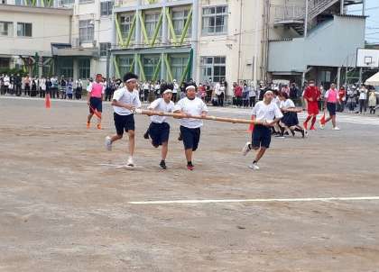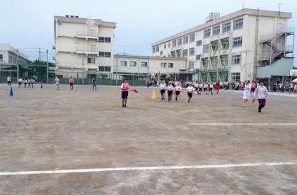 仲間と協力して、コーンを回りながら全力疾走しました。