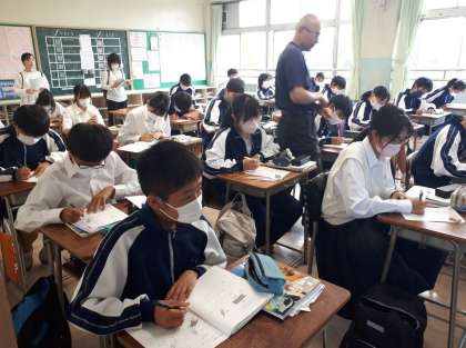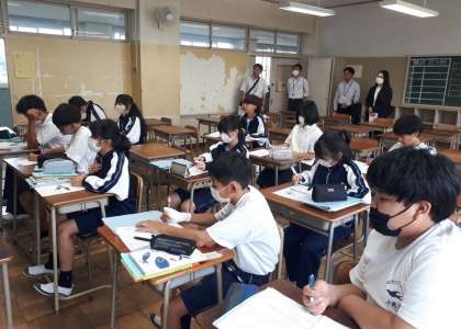 5校時の授業公開では、小学校の先生にいいところを見せようと張り切ったり、思わず手を振ってしまったりする姿がありました。先生方も生徒も久しぶりに会うことができ、笑顔がたくさん見られました。