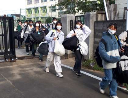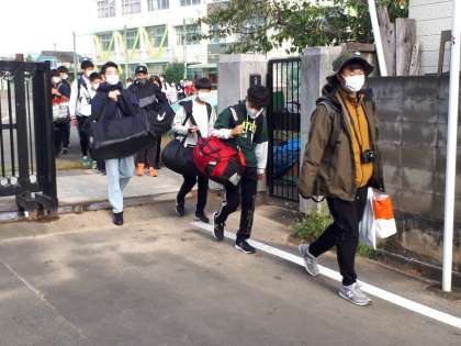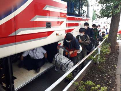 大きな荷物をバスに積み込み、予定の7時30分よりも少し早く出発することができました。