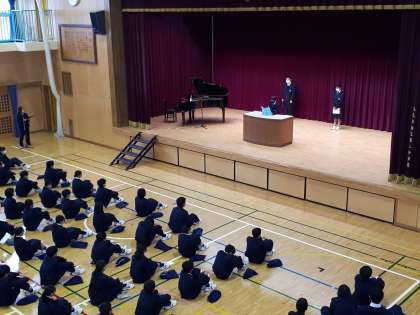 代表生徒から今年度の反省(成長)、来年度に向けての抱負が語られました。4月からの新学期がとても楽しみです!