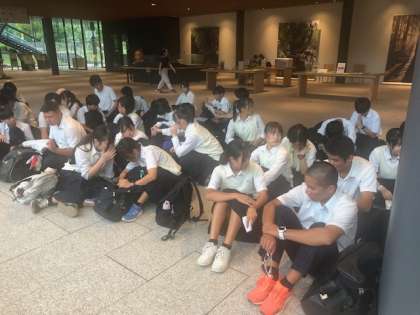 奈良公園班行動からバスターミナルに戻ってきました。暑さのため、みんなお疲れのようです。これから京都の宿舎に向かいます。