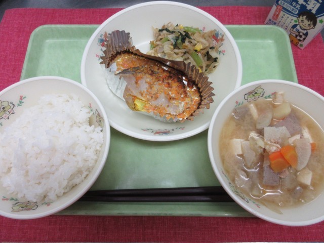 今日は、そんな八王子の風景をイメージした「夕焼小焼やき」を給食でいただきました。魚の上に人参をすりおろしたマヨネーズソースをかけて焼き上げました。マヨネーズのコクがたんぱくな魚と相性がよく、食べやすく仕上げました。