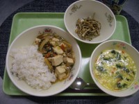 給食委員会の取組として、八王子市の食育キャラクター「はっちくん」の“木のポスター”を各クラスに用意し、目標達成に応じて1枚シールを張り花を咲かせる取組をしています。