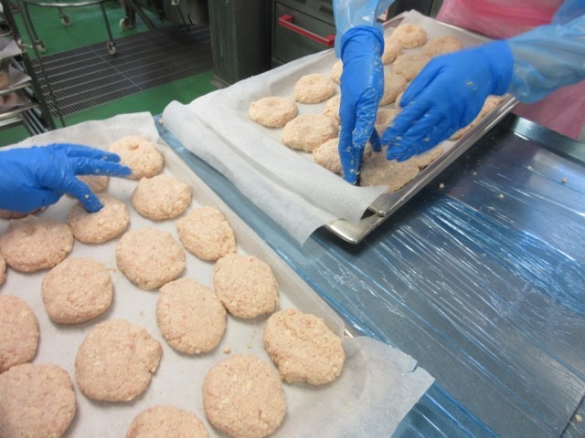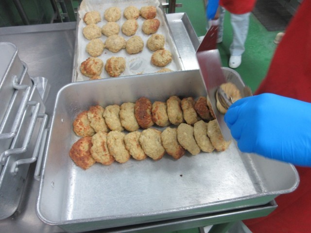今日のハンバーグソースには今が旬のきのこをふんだんに使ったソースをかけて提供しました。