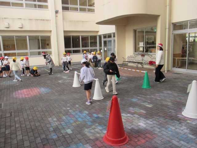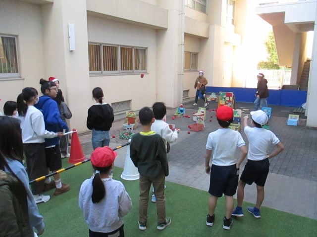 今日の中休み、昼休みには、遊びボランティアさんによる、クリスマスイベント2025が行われました。