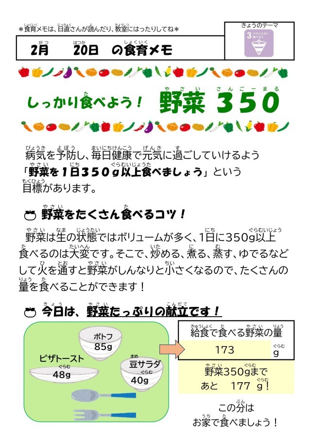 2月20日(金)今日の給食