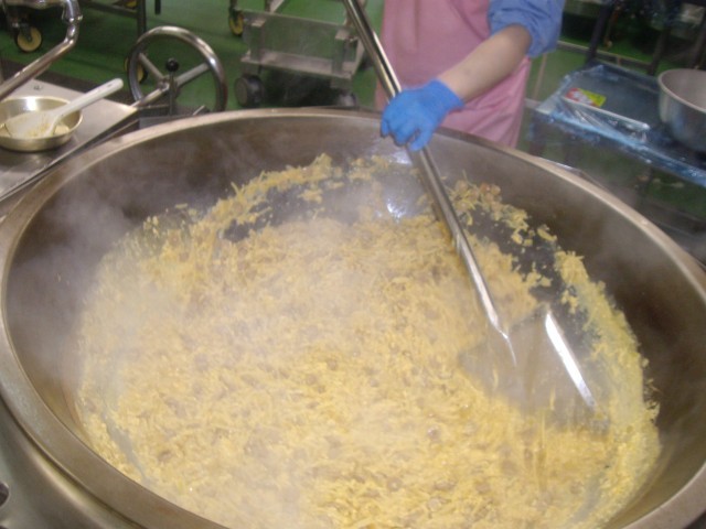 今日はじゃがいも、玉ねぎ、ウィンナーなどの具材がたっぷり入ったオムレツをいただきました!