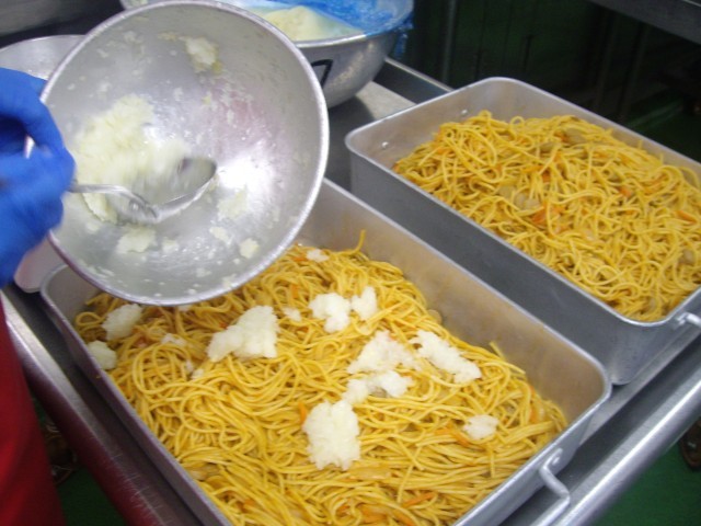 刻みたまねぎをナポリタンの上にのせるのが特徴で、隠し味にみそも入っています✨