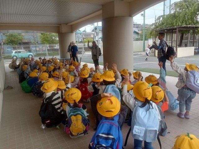今日は、1年生が初めての遠足て、富士森公園に行きます。雨がやんでよかったね!