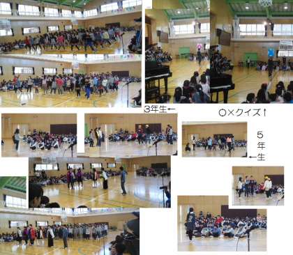 5年生の児童委員による、6年生○×クイズ。事前に6年生にアンケートをとった結果をもとにクイズを考えました。