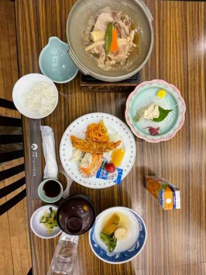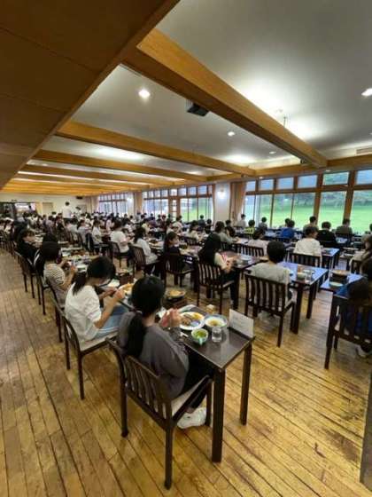 みんな楽しみにしていた夕食です。食事係の案内で、席に着きます。感謝を込めて「いただきます。」をしました。