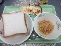 🍞パン🥔ポテトグラタン🥬大根サラダ🍎りんごジュース 八王子市の小学校のグラタン...