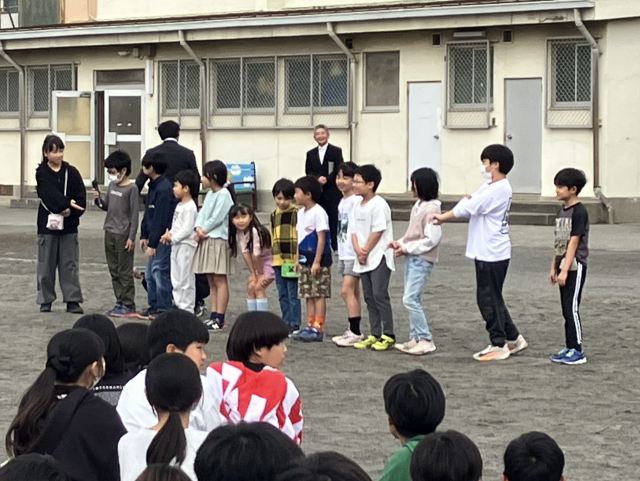 全校でいっせいに「じゃんけん列車」。 勝ち残りの人が、「四小のいいところ」を発表しました。